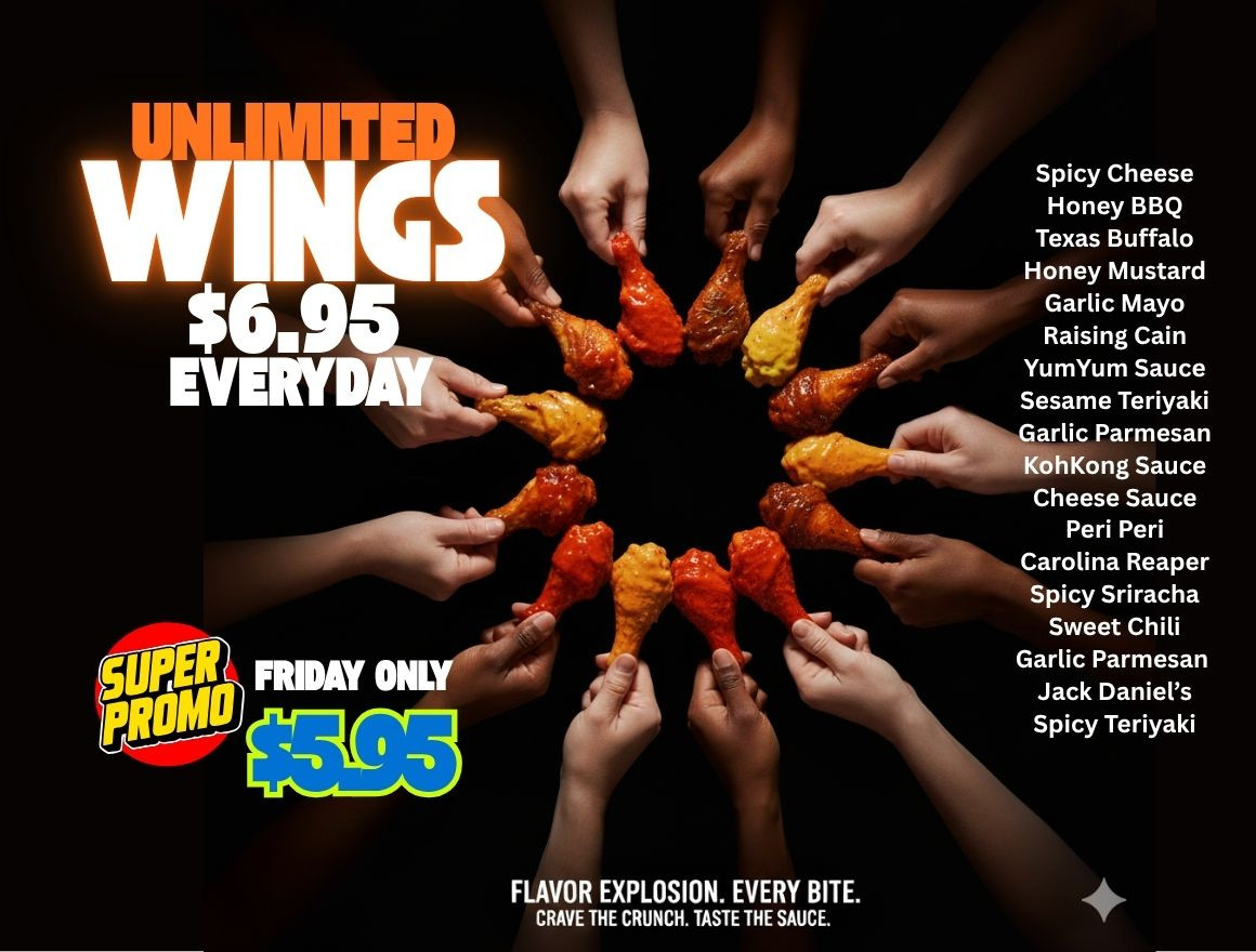 SUPER PROMO FRIDAY: UNLIMITED WINGS FOR ONLY $5.95